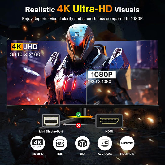 4K Mini Displayport to HDMI Cable, 4K@30Hz Thunderbolt to HDMI Cable, [Alum Shell/Braided/Optimal Chip Solution], Mini DP to HDMI for Macbook Air/Pro, Surface Pro/Dock, Monitor, Projector - 6FT